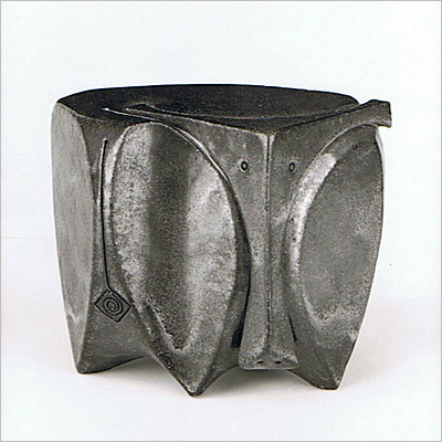 Schwarzes Steinzeug, aus lederhartem Tonkubus herausgeschnitten, 1215 °C, glasiert