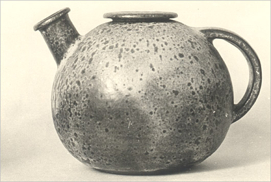 Schwarzes Steinzeug, gedreht, flacher Deckel, 1215 °C, matt-hellblau glasiert