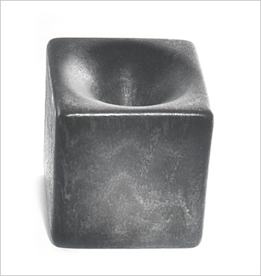 Schwarzes Steinzeug, Innere Wand kegelförmig gedreht, Äußeres aus Tonplatten aufgebaut, zusammengefügt, 1215 °C, Holzascheglasur