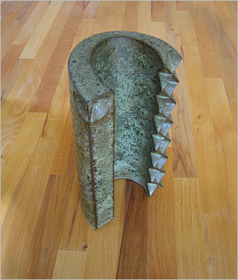 Schwarzes Steinzeug, aus lederhartem Tonkubus herausgeschnitten, 1215 °C, glasiert