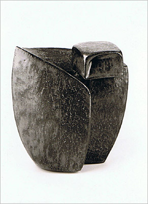 Schwarzes Steinzeug, frei modelliert, Kopf aus lederhartem Tonkubus geschnitten, 1215 °C, glasiert
