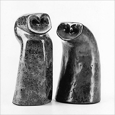 Schwarzes Steinzeug, aus lederharten Tonkuben geschnitten,