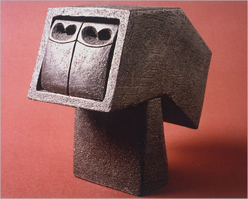 Schwarzes Steinzeug, aus lederharten Tonkuben geschnitten und aus Platten gebaut, 1215 °C, unglasiert