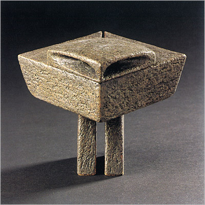 Helles schamottiertes Steinzeug, aus lederharten Tonkuben geschnitten, 1215 °C, glasiert