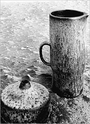 Schwarzes Steinzeug, gedreht, 1215 °C, grau-weiße Erdglasur