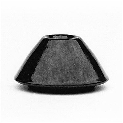 Schwarzes Steinzeug, gedreht, Kragen weit heruntergezogen,