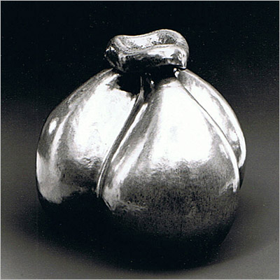 Schwarzes Steinzeug, Boden in Negativform gearbeitet, darüber frei aufgebaut, 1215 °C, glasiert