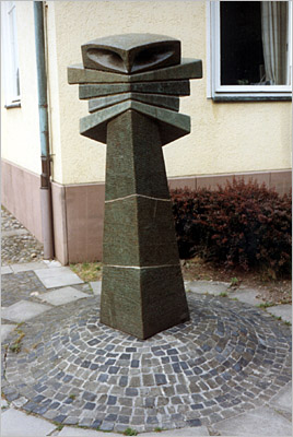 Schwarzes Steinzeug, Einzelteile aus Tonplatten aufgebaut, innen verstrebt,